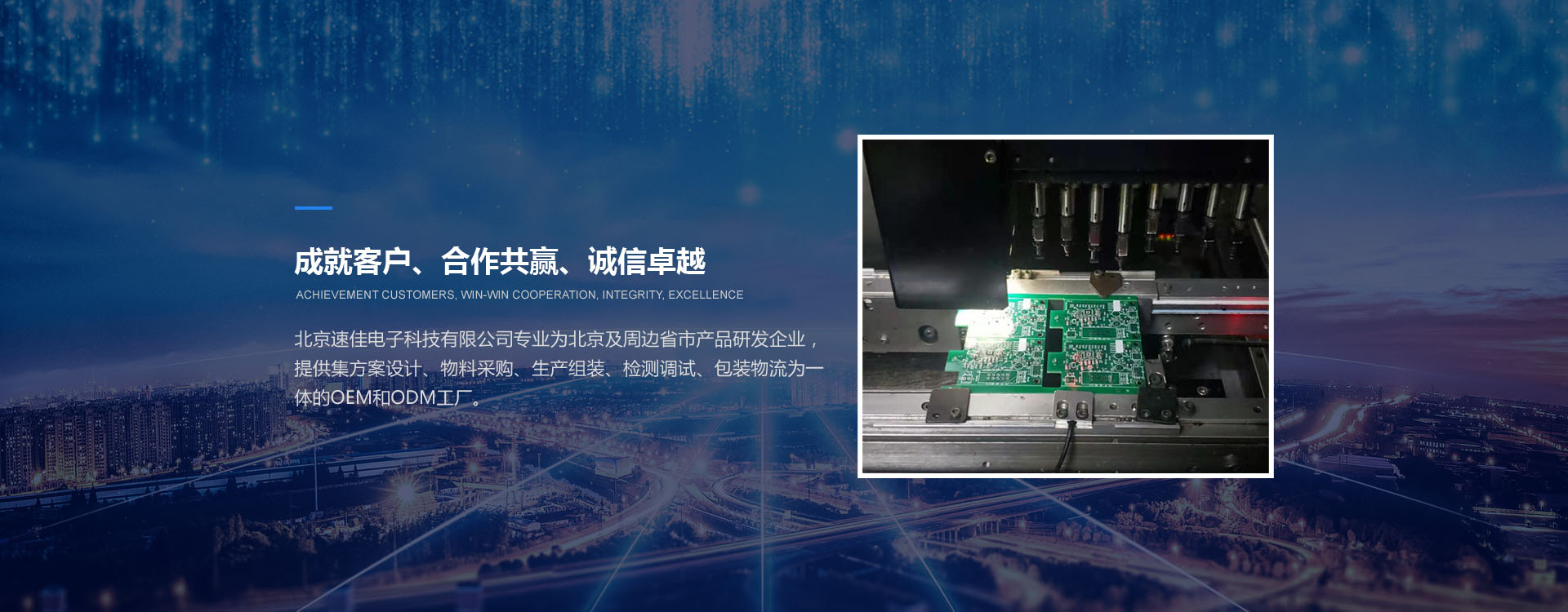 北京速佳電子科技有限公司專業(yè)為北京及周邊省市產(chǎn)品研發(fā)企業(yè),提供集方案設(shè)計(jì)、物料采購(gòu)、生產(chǎn)組裝、檢測(cè)調(diào)試、包裝物流為一體的OEM和ODM工廠。